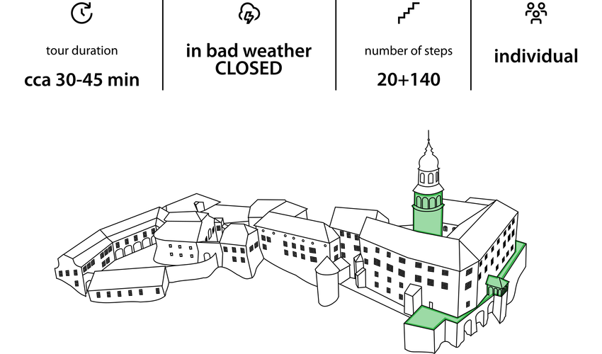 This self-guided tour allows you to explore the defensive tower, the Renaissance terrace, and the cellar, which feature an exhibition on the historical evolution of Náchod Castle. In case of bad weather the tower will be closed!