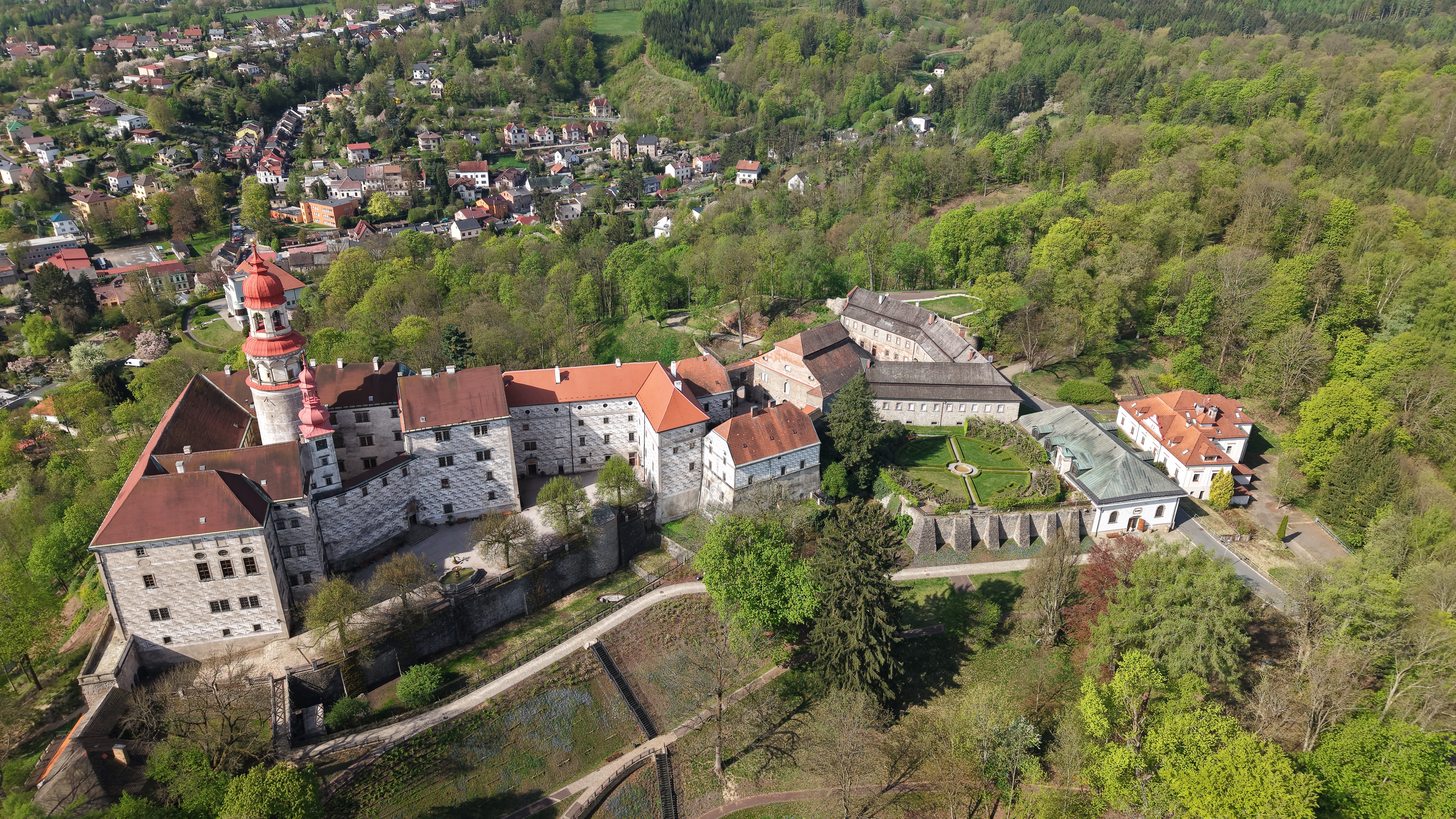 Letecký pohled na náchodský zámek